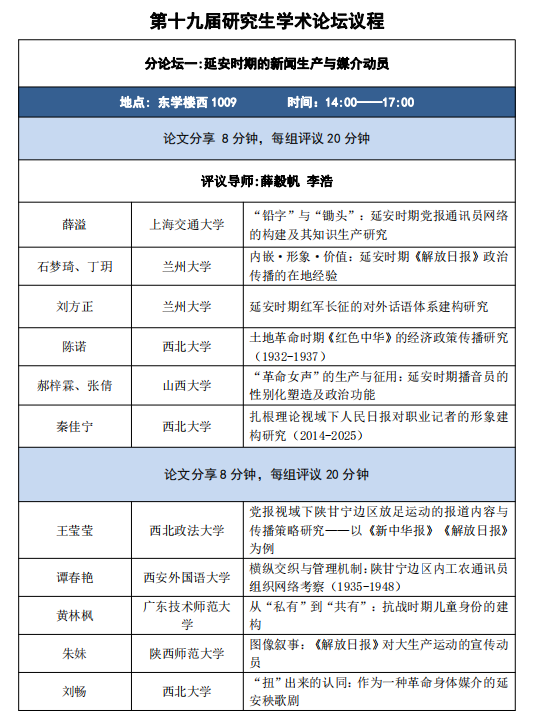 “智能时代新闻传播研究的新理论、新范式与新方法”学术工作坊暨第十九届研究生论坛会议议程