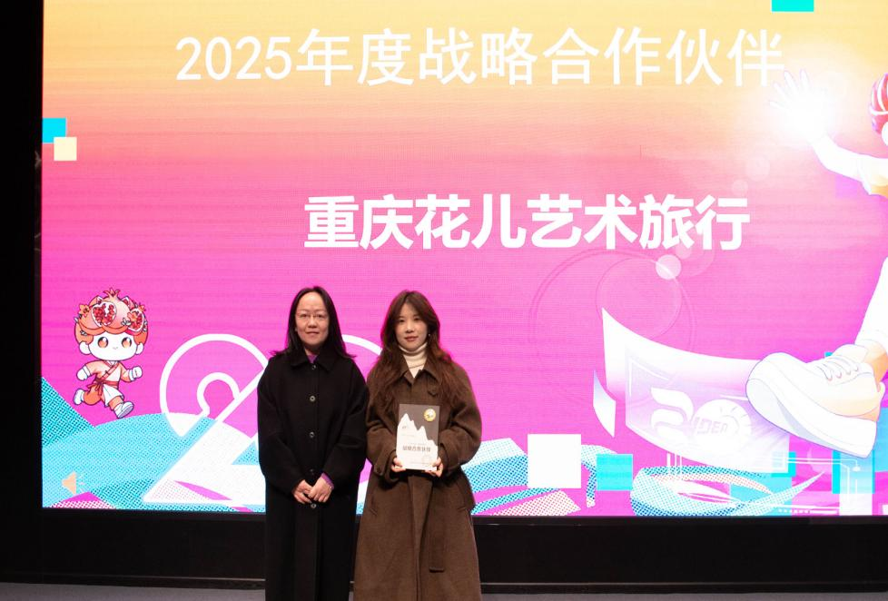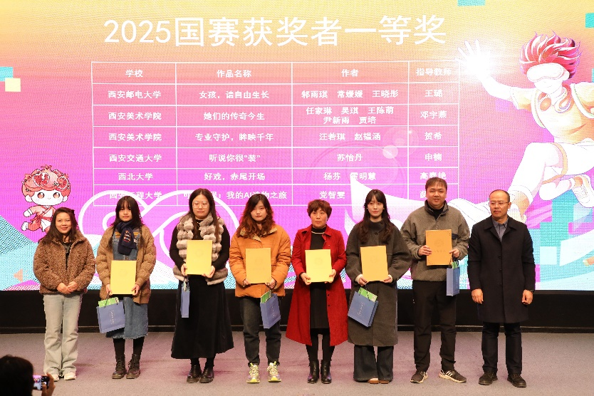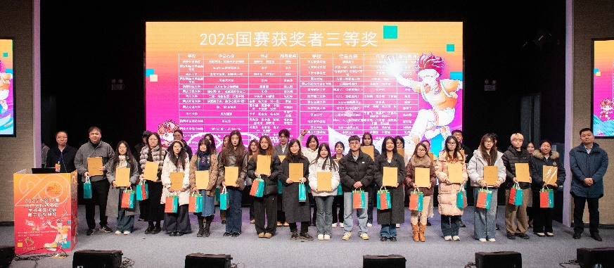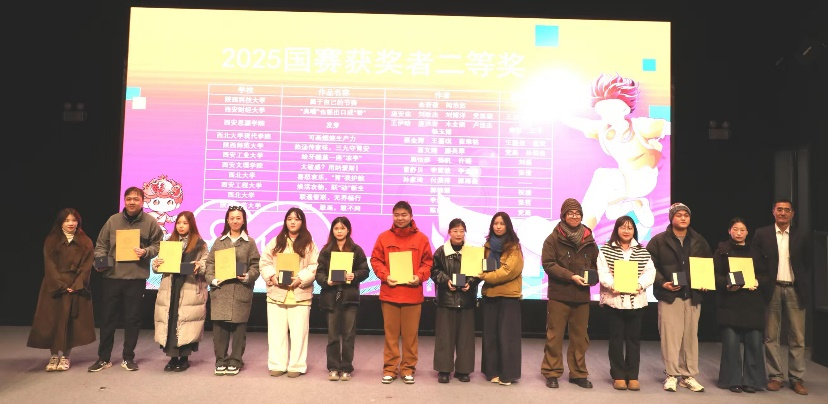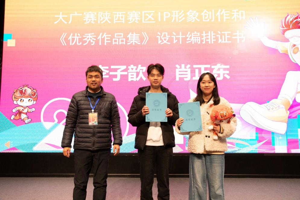 颁奖环节,大广赛陕西赛区组委会颁发了20年突出贡献奖、20年卓越奉献奖、年度优秀组织奖、年度优秀组织工作者,本届国赛教师组与学生组一、二、三等奖。同时,主办方向重庆花儿艺术旅行颁发了年度最佳战略合作伙伴奖牌,向李子歆和肖正东同学分别颁发了大广赛陕西赛区IP形象创作证书和《优秀作品集》设计编排证书。