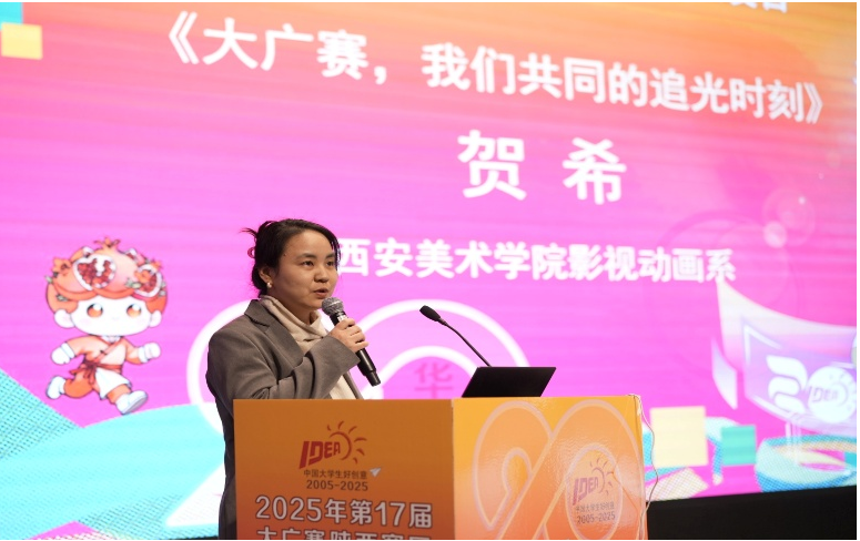 西安美术学院教师贺希、西安邮电大学学生邾雨琪分别从指导教师和参赛学生视角做了分享交流。