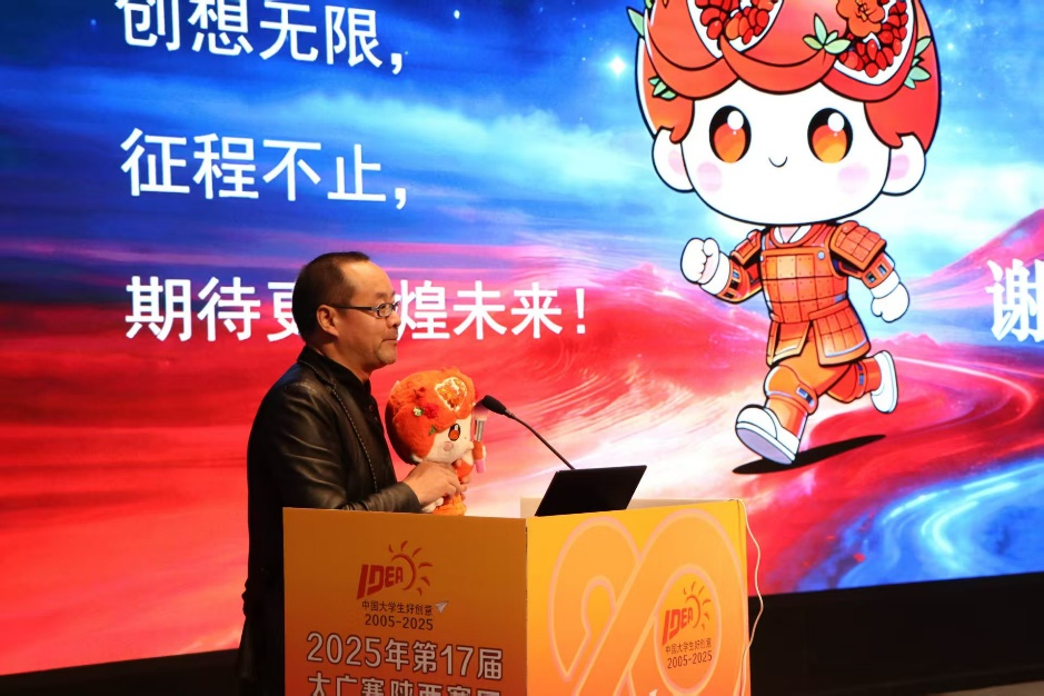 大广赛陕西赛区组委会副主任兼秘书长李常青以《大广陕西赛区20年发展回顾暨第17届赛事数据洞察报告》为题,分享了陕西赛区的成长历程,以及第十七届“大广赛”陕西赛区规模数据与三大趋势、突破性成果及未来展望,并现场发布陕西赛区吉祥物“闪灵灵”。